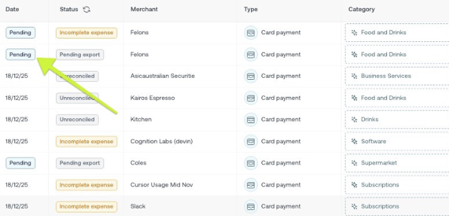 Note: the pending amount may differ from the final amount if the merchant has placed a temporary authorisation hold (common with hotels, fuel stations, or subscriptions).