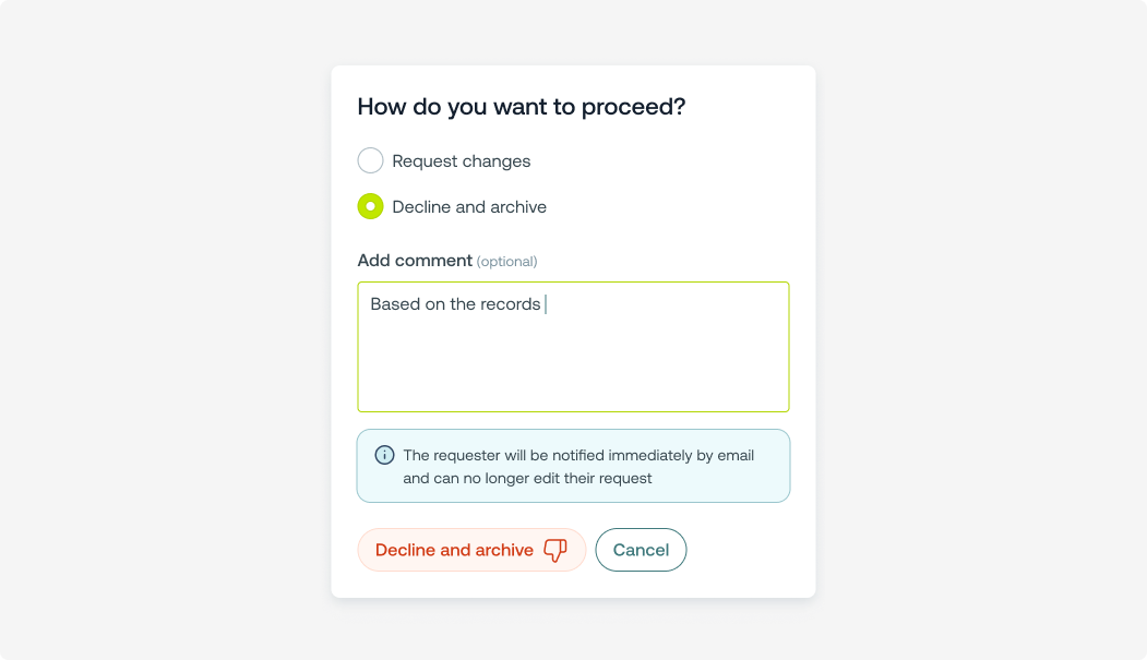 The Decline Comments feature allows approvers to provide context when declining a top-up, invoice payment, reimbursement, or card payment request. This helps submitters understand the reason behind the decision, streamlining communication and reducing back-and-forth. This is currently only available when approving items from the web app.
