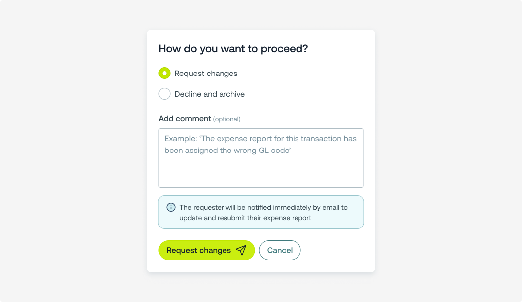 When an approver requests changes to your submitted item (top-up, bill, reimbursement, or card payment), you’ll need to review their feedback, make the necessary updates, and re-submit the item for approval. Follow the steps below to re-submit your item on both the web and mobile apps.