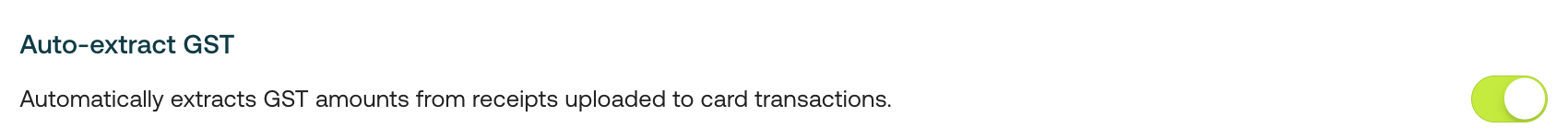 - If enabled, Weel AI will start automatically extracting GST for all new card transactions made whenever a receipt file is uploaded