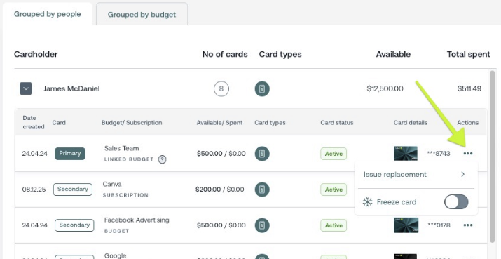 As soon as a suspicious or unauthorised transaction is noticed, contact an admin user to lock the card to stop any further spending.