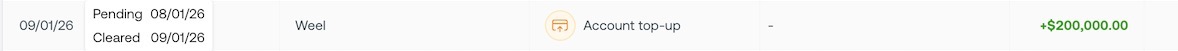 When funds are added to your Weel account, the date you see reflects when the money becomes available in your Weel balance. This helps ensure your balance activity accurately reflects when funds can actually be used, giving you clearer visibility and easier reconciliation.